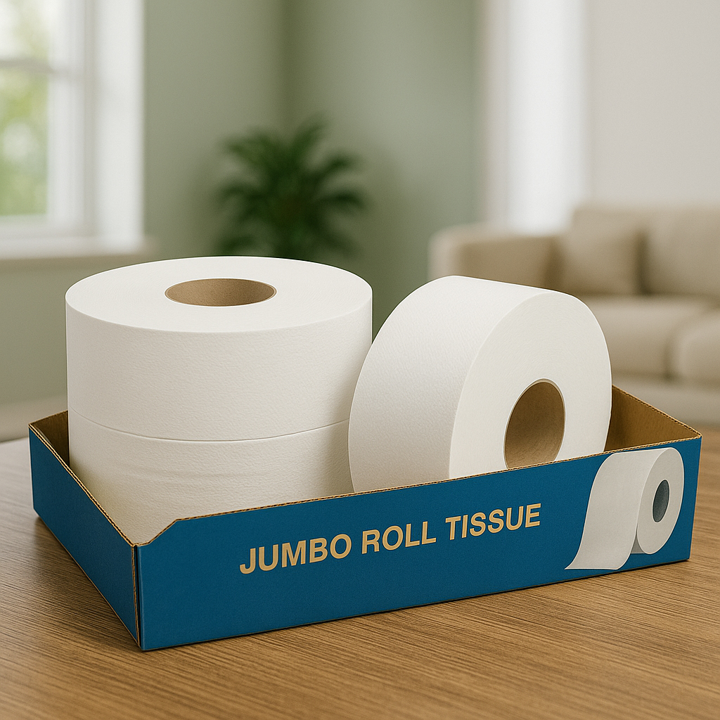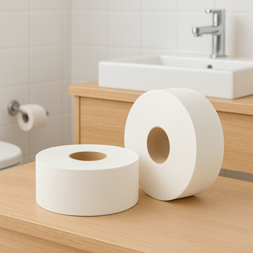 Our Jumbo Roll Toilet Paper is designed for commercial restrooms, public facilities, offices, and high-traffic environments, providing high capacity, durability, and cost-effective usage.