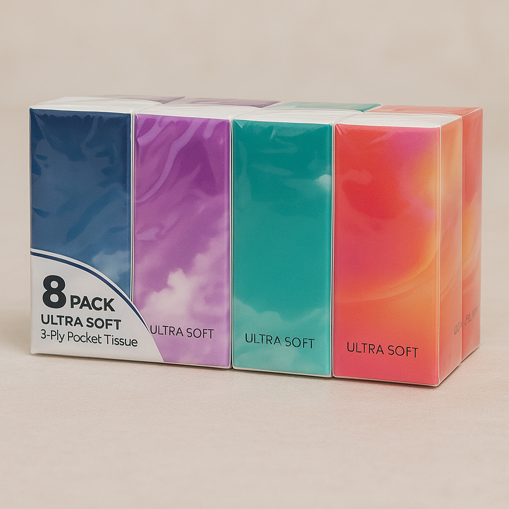 The tissues are available in bamboo pulp, virgin pulp, and recycled pulp, providing flexible material choices for different sustainability and market requirements.
